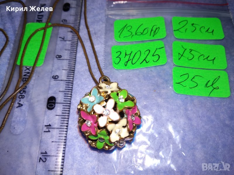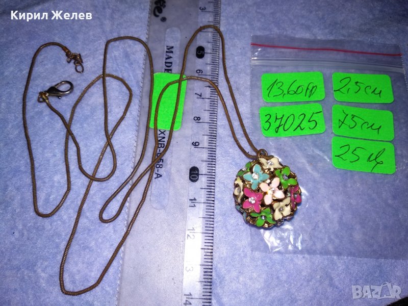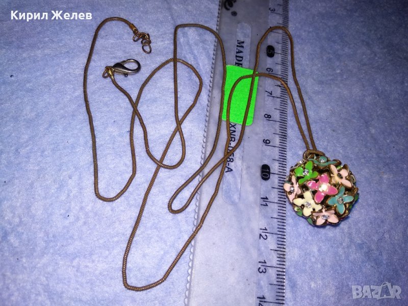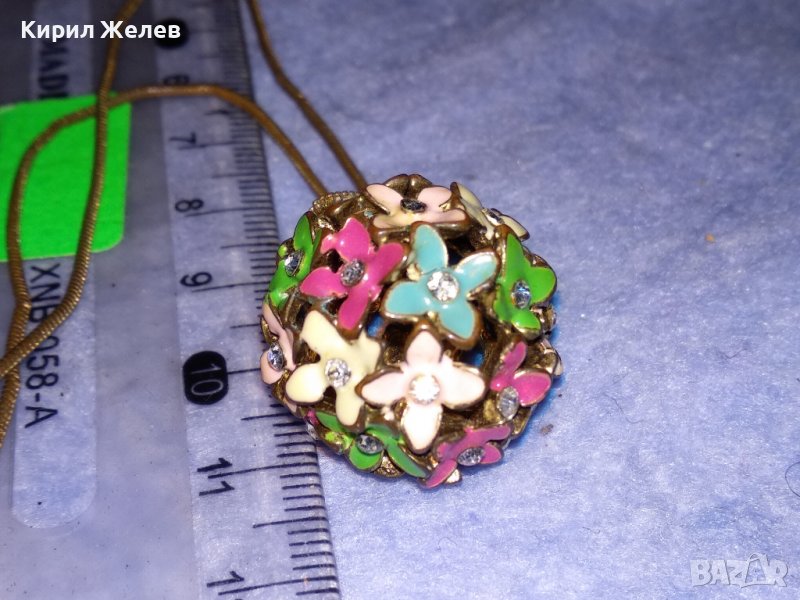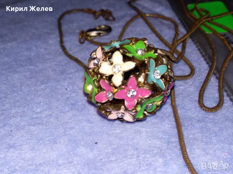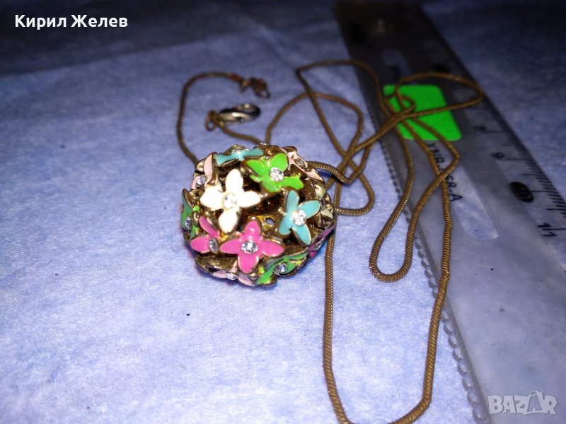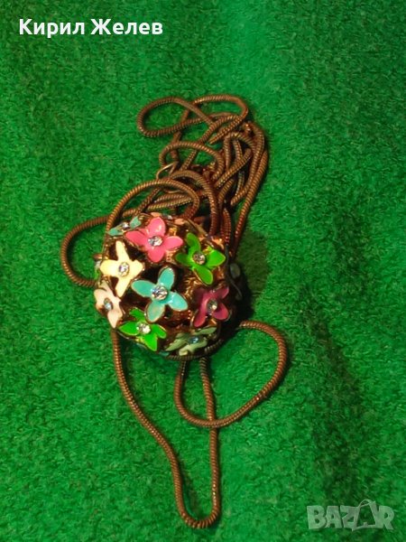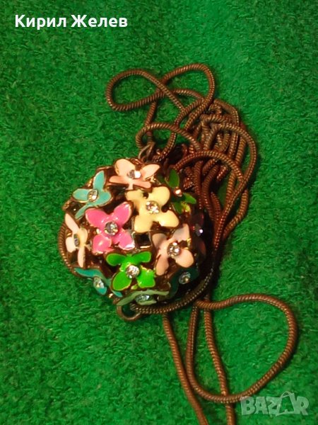 ПРЕКРАСЕН ФЛОРАЛЕН АЖУРЕН ЕМАЙЛИРАН КРИСТАЛЕН ВИНТИДЖ АРТ МЕДАЛЬОН с ДЪЛГА СТАРА МЕДНА ВЕРИЖКА 37025