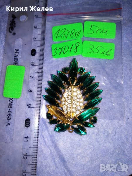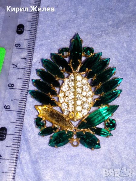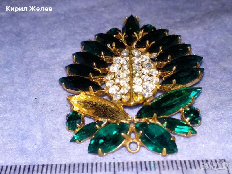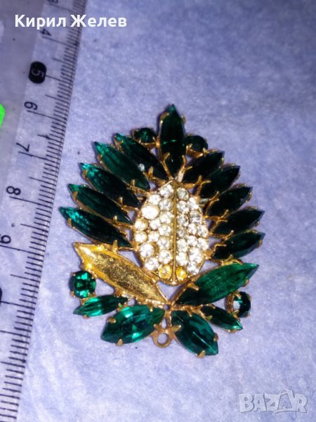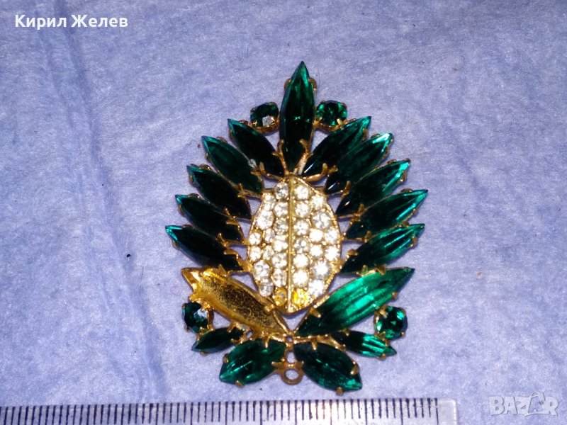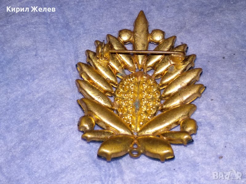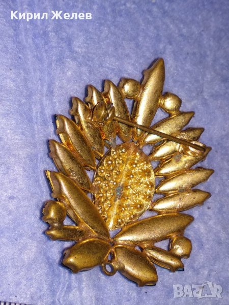 СТАРА ПОЗЛАТЕНА БРОНЗОВА ФЛОРАЛНА РЕТРО БРОШКА с ФАСЕТИРАНИ БЛЕСТЯЩИ КРИСТАЛИ 37018
