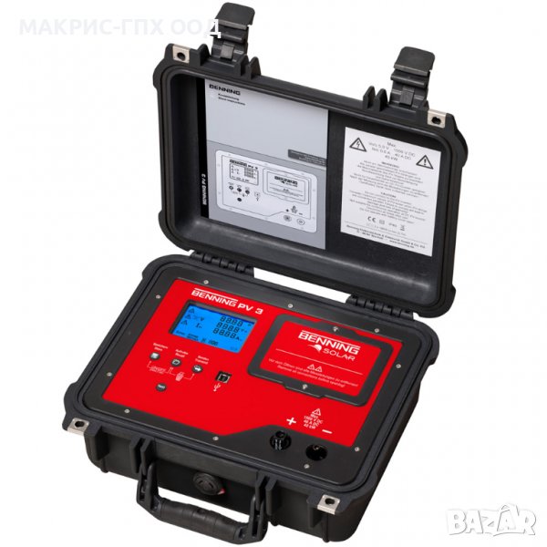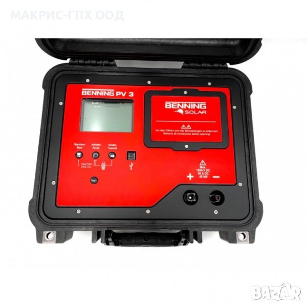 Проверка на поляритет, измерване на напрежение и ток на късо съединение на паралелно свързани PV -стрингове се извършва, съхранява и документира безопасно и ефективно до 1500 V / 40 A в процеса на изпитванията при въвеждане в експлоатация и периодичната проверка на свързаните към мрежата фотоволтаични системи в съответствие с DIN EN 62446 (VDE 0126-23).