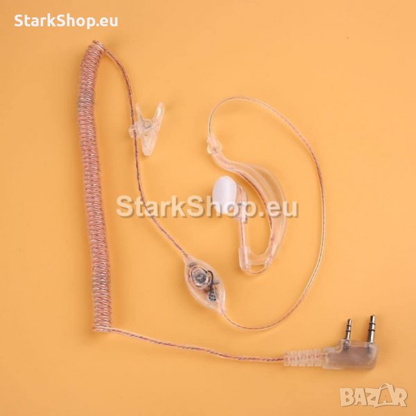 Силиконова слушалка за радиостанции Baofeng. Изработена от прозрачен силикон за добра визия и дискретност при носене. Съчетава комфортна слушалка с анатомична форма и удобно разположен микрофон. Общата дължина на хендсфриито е около 1 метър. Осигуряват работа с т.н. свободни ръце, функцията VOX и др. Особенно удобни за ползване от охранители, полиция, фирми разполагащи с подобна връзка, ловци или радиолюбители, чиито радиостанции имат VOX функции.