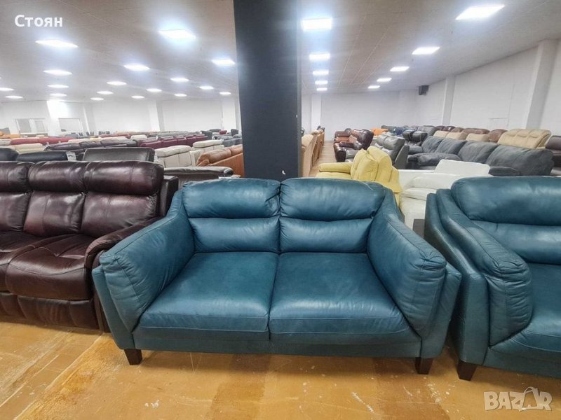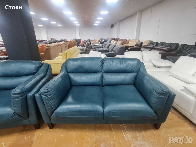 Петролено сини кожени дивани две двойки - 100 % естествена кожа в отлично състояние.