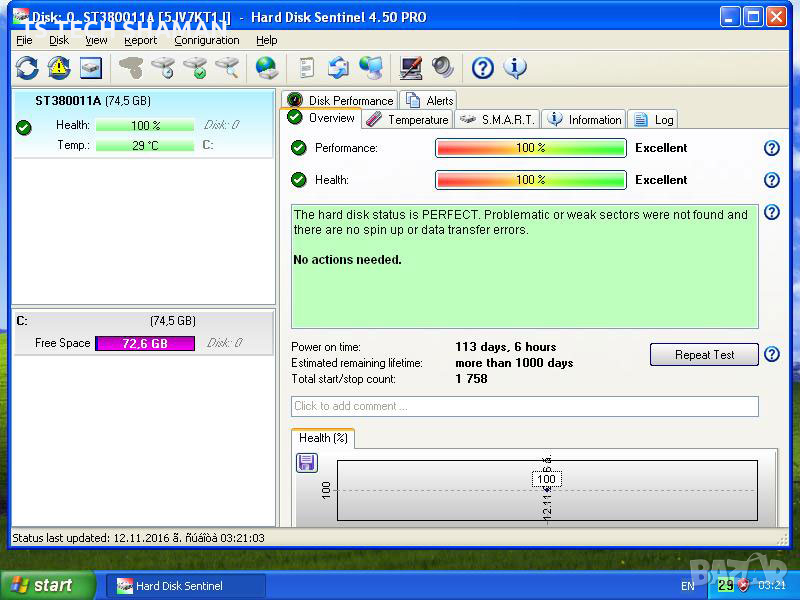 Продавам перфектни твърди дискове (Посочените Цените са за SATA дискове 100% Health. Цените на ATA дискове 100% Health са умножени по две!)