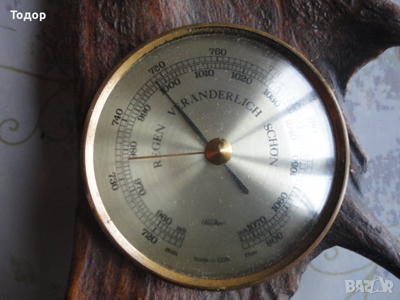 Уникален барометър еленов рог Fischer made in GDR → Обява 39948769