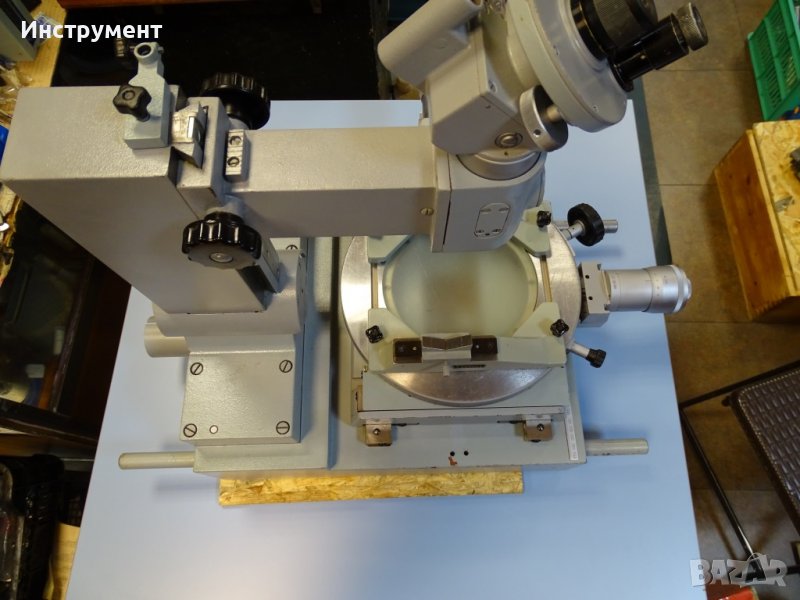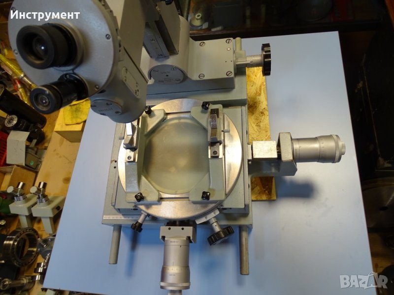 Предлагаме употребяван, в отлично състояние и запазени технически параметри, голям инструментален микроскоп съветско производство, в комплект с приспособления необходими за прецизна работа.