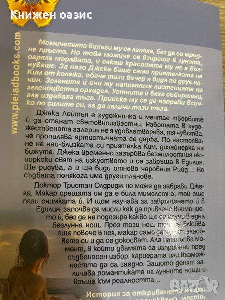 Само че съдбата има други планове – да върне в живота ѝ очарователния доктор Трис, в чиито обятия тя забравя всичко останало. Ала настъпва момент, в който и двамата трябва да решат какво да изберат – кариерата или щастието да са заедно. Защото денят заличава романтиката на лунната нощ и връща към реалността…