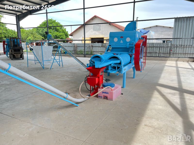 Обеззаразяващата машина с шнек третира семената посредством мехнаичният кантар дозатор, който регулира дозировката на обеззаразителна смес според теглото материал постъпил в него. След това те се бъркат по цялата дължина на щадящият шнек, докато не се разтоварят от него. Изключително леката конструкция на кантар дозатора го прави лесно преносим и възможността да бъде разглобен го прави и практичен за съхранение. Може да се използва и само като зърнотоварач, без да се пуска помпата за третиращата смес. Безосовият шнек с ПВЦ тръба щади предварително почистеното семе от натрошаване, което го прави по-ефективен от шнековето с ос. Възможността да се използва по- дълга тръба позволява да се товари директно в биг-бег или ремарке.