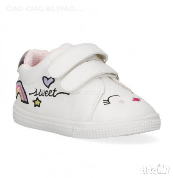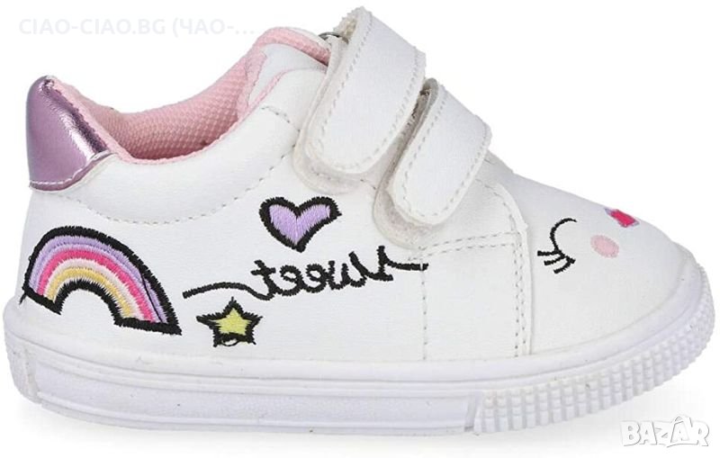 №18-№23, Бебешки обувки за момиче, бели с цветни декорации BUBBLE KIDS