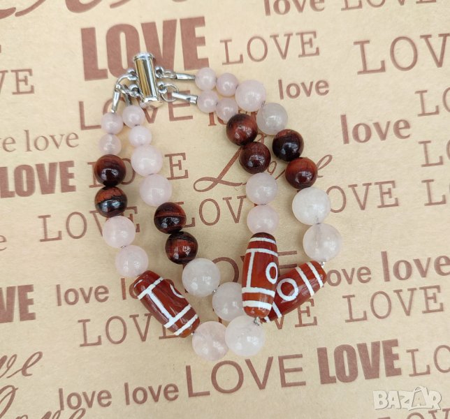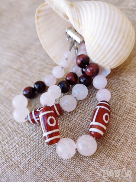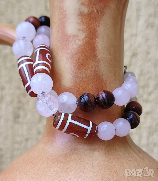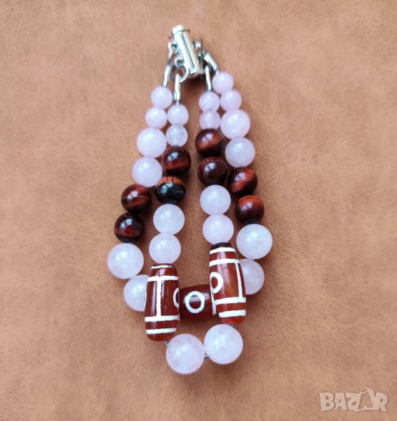 2 очи са съчетани с мъниста от розов кварц (двойки по размер-6,8,10 мм)