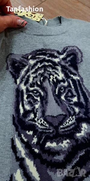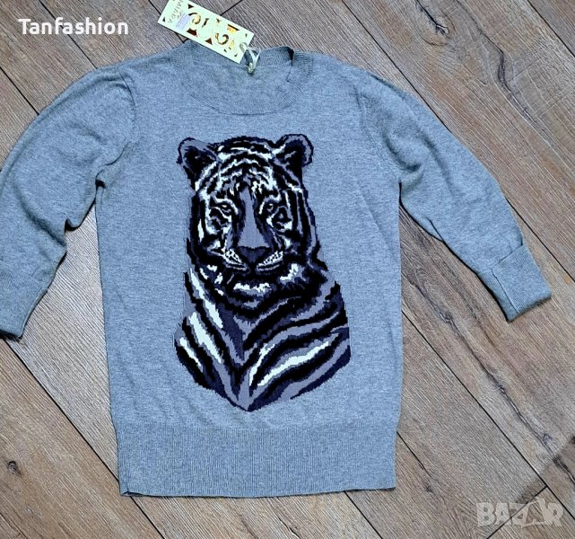 Нова дамска уникална сива блуза с 3/4 ръкав и интересен принт отпред, най-модерният цвят за сезона