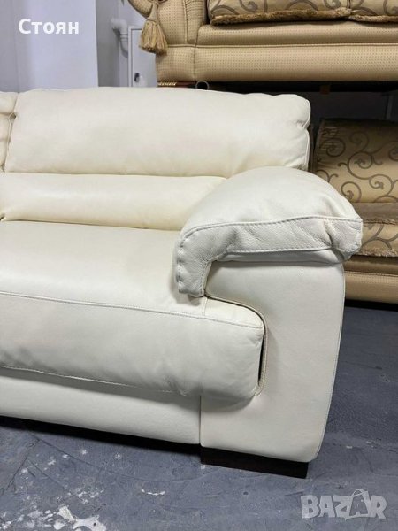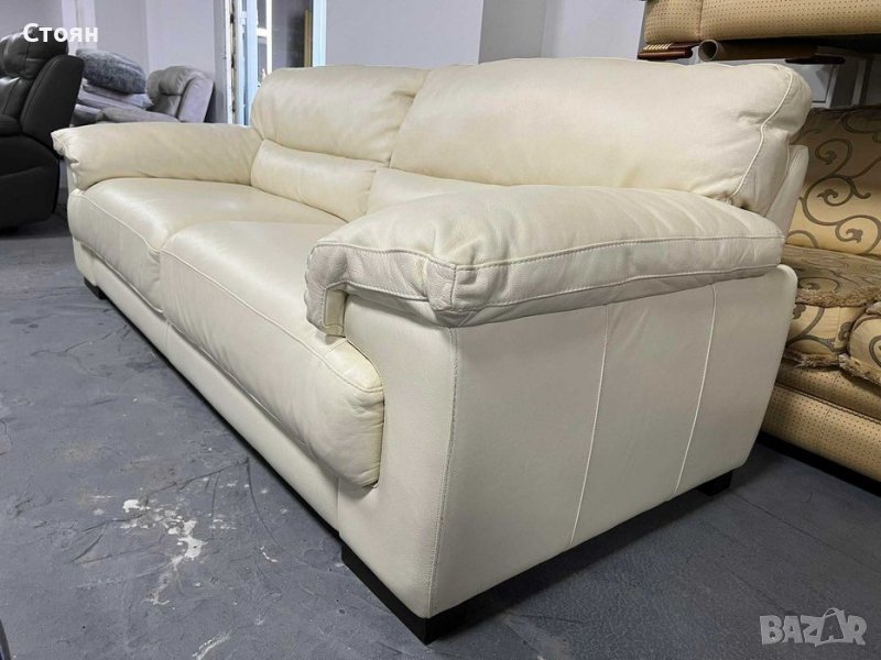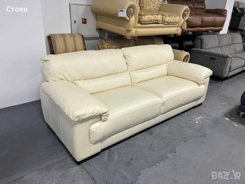 Светло кремав кожен диван тройка