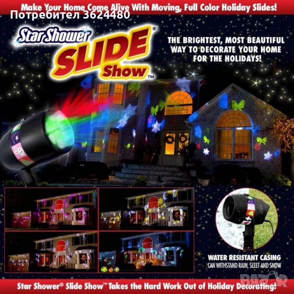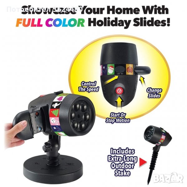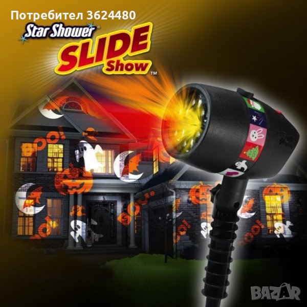 Излъчва зелена и червена светлина под формата на различни фигурки;
