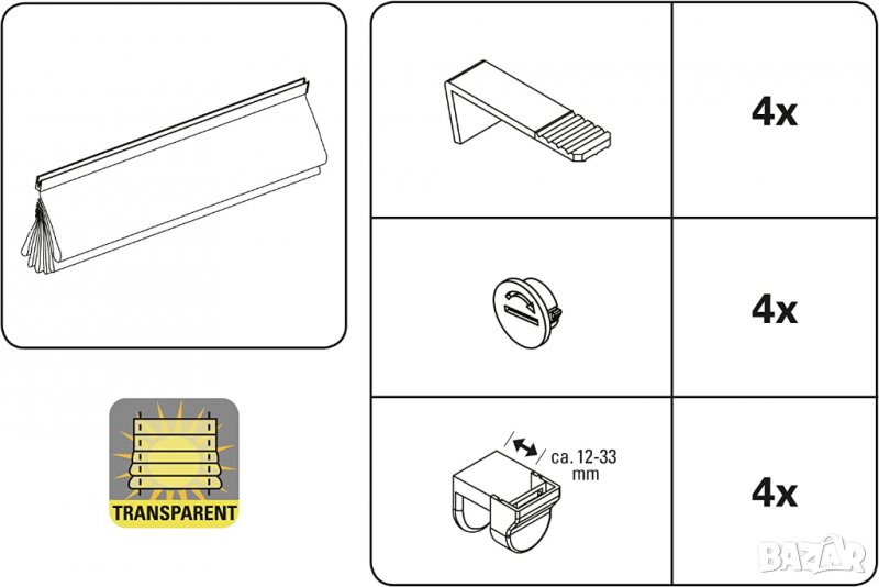 прозрачна, включени всички монтажни части, 2 работни релси, бяла, 60 x