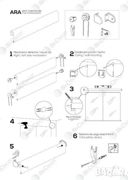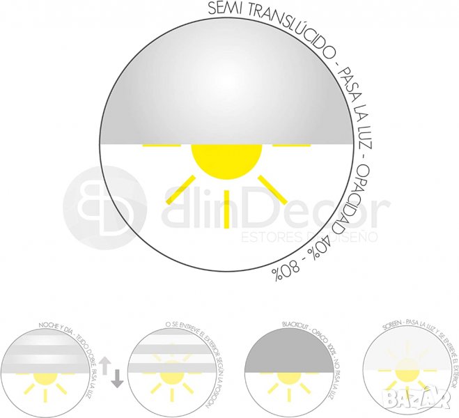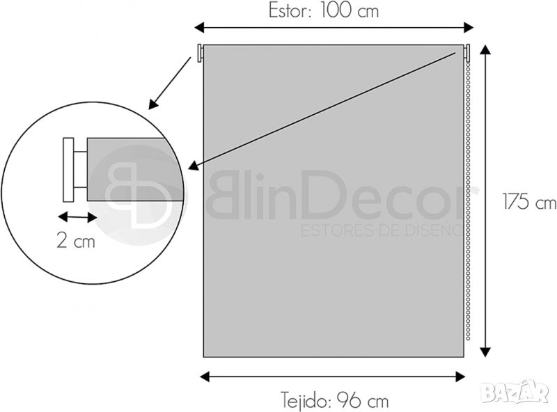 - ✅ Ролетна щора, 100% полиестер. Монтаж на стена или таван с помощта на същите скоби
