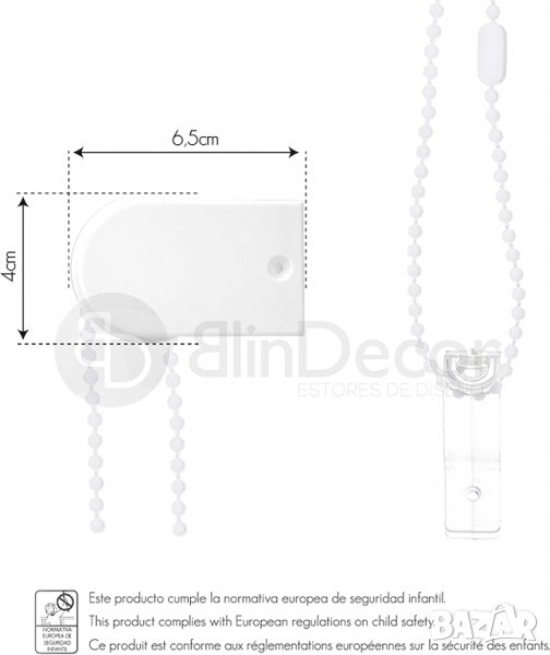 - 🔝 Механизъм и верига от бяло PVC. Регулиране чрез верижен механизъм с безопасност за деца