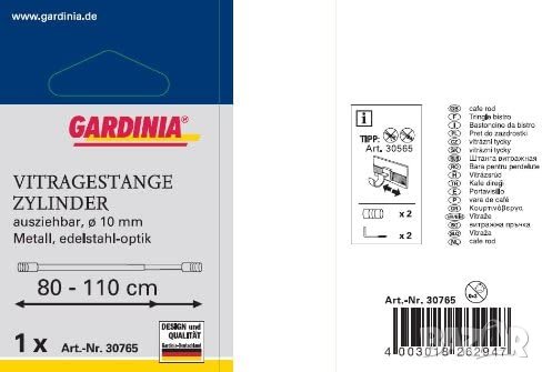 - Обхват на доставката: 1 лост GARDINIA с 2 винтови куки, диаметър: 10 мм, дължина: 60-85 см, метал, вид на неръждаема стомана