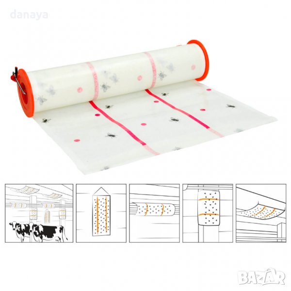 Лепкав капан за контролиране на мухи и летящи насекоми. Лепящата лента срещу мухи е ефективна механична защита при голямо наличие на мухи. Подходяща е за употреба в дворове, беседки, конюшни, оранжерии или складове.