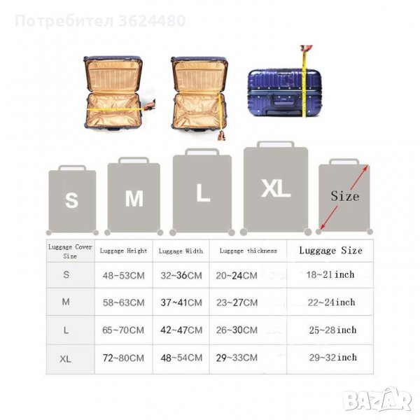 Размер XL - Височина от 74 до 80 см ; Широчина от 48 до 54 см. ; Дебелина от 29 до 33см.
