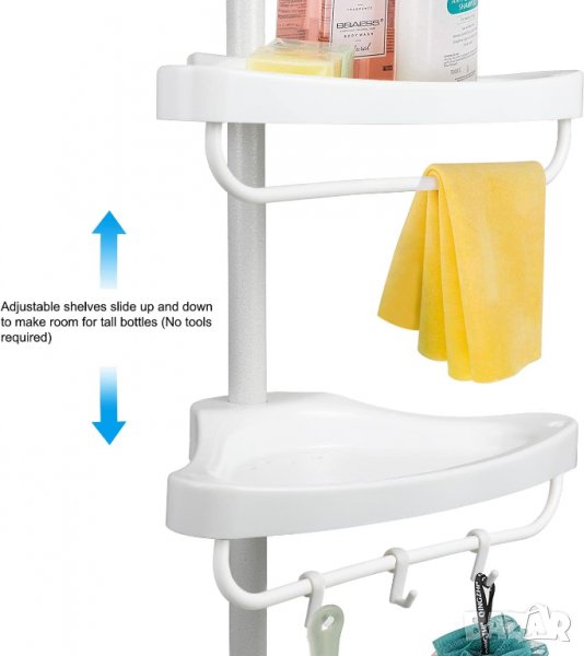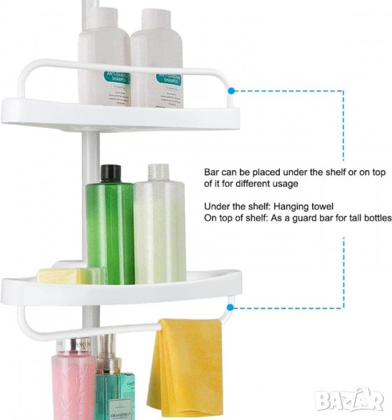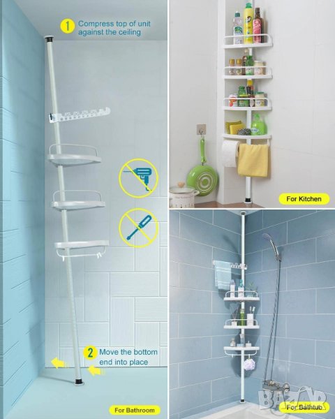 - 🧺【Рафт за душ без пробиване】: Има голяма пружина в телескопичния прът. Можете лесно да закрепите телескопичната пръчка. Неплъзгащите се подложки в двата края на пръта могат да предпазят тавана и пода от повреда. Диапазон на регулиране на височината: 110-310см.