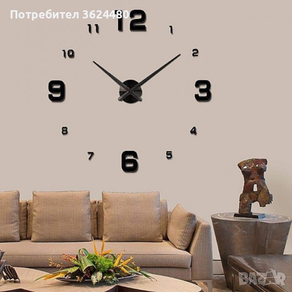 Голям 3D стенен часовник, модерен дизайн с акцент големи цифри 3, 6, 9 и 12 → Обява 39960313