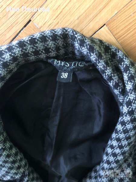 Много запазено, носено един сезон на марката Mystic. По етикет размер 38, но перфектно и за 36, който съм аз. 85%полиестер и 5% вълна. Има лек проблем с копчето тик-так, отхлабило се е и се откопчава, но може да се смени. За повече инфо на лично.