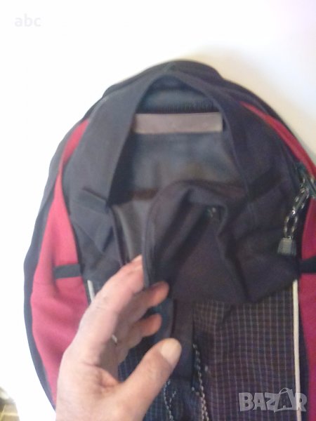 Раница трекинг прекрасна .ползвана има забележка малкото джобче не се затваря но е лесно за оправяне.Има колан за кръста и щипка през гърдите,машко лалъфче за бутилка/не е снимано/ и дъждобран който обхваща цялата раница дори ида е пълна.Подходяща както за мъже така и за жени.Размери ширина 35 височина 48.