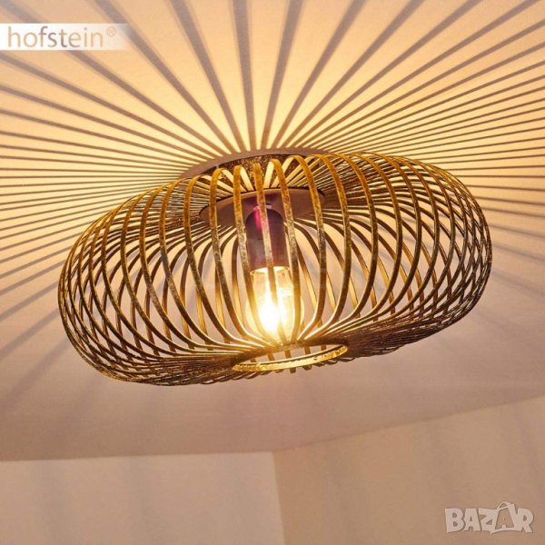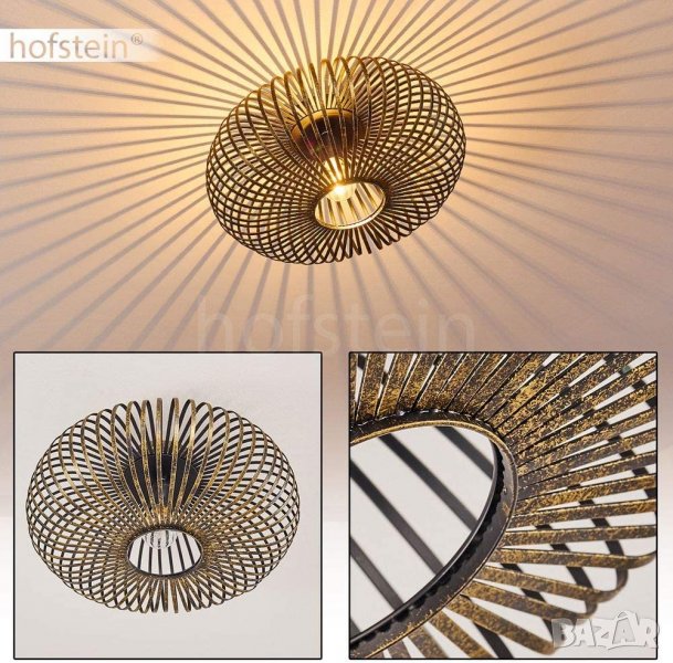HOFSTEIN Oravi, кръгъл плафон от метал в черно/златно, 1 крушка, цокъл