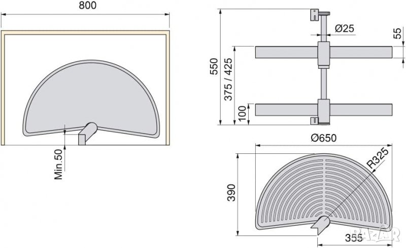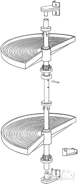 Emuca - Въртящ се обков с рафт за кухненски ъглов шкаф, Въртящ се обков полукръг Ø750мм