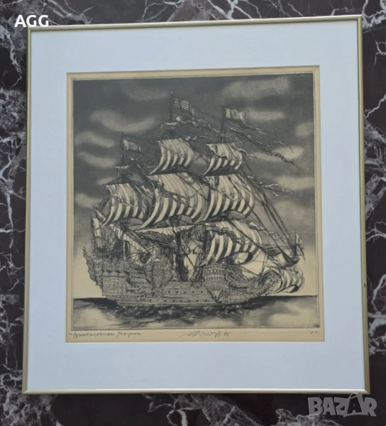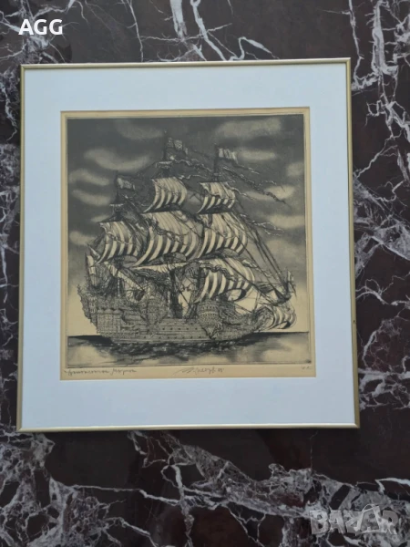 Графика "Фантастичната марина" на Тодор Петров - Тото, дългогодишен художник на Параходство Български Морски Флот.