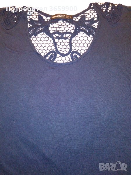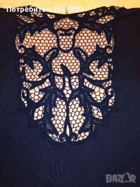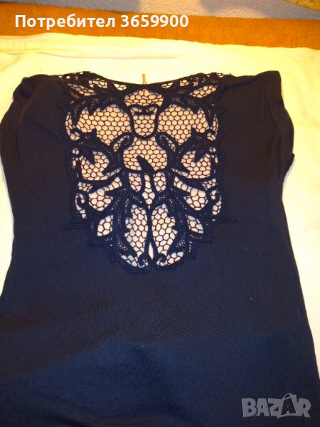 Дамски комплект от блуза с къс ръкав и желетка.Размер 8-10UK.Блузата е с рязана бродерия на гърба, цвят - тъмно син.Размер 8-10.