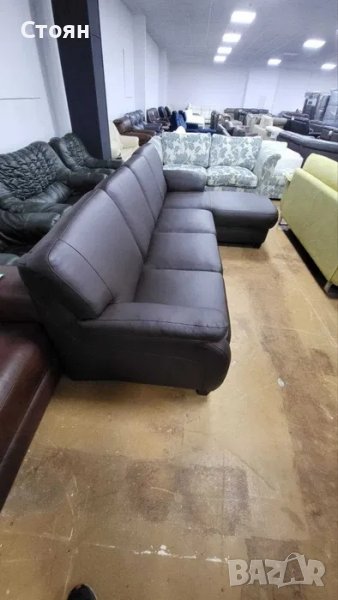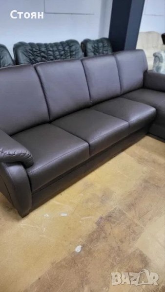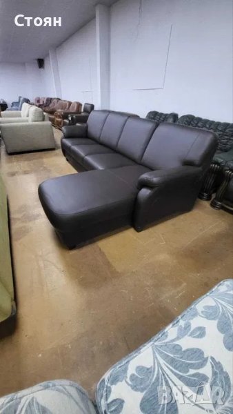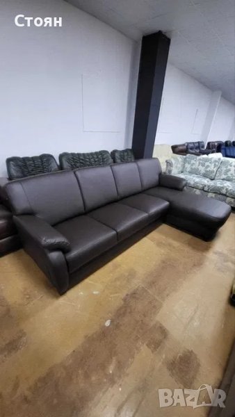 ПРОМОЦИЯ!!! Кафяв кожен ъглов диван с лежанка "TOULOUSE"