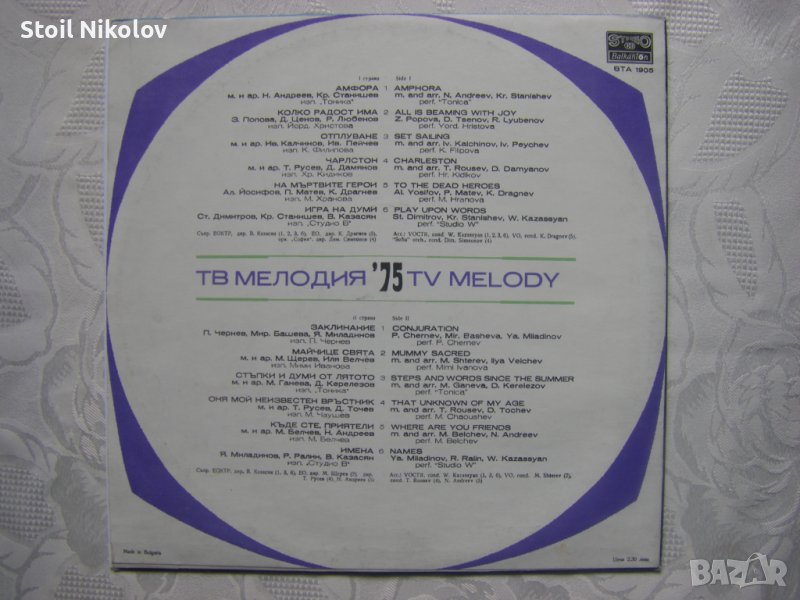 Грамофонна плоча - ВТА 1905 - Българска телевизия. Мелодия 75