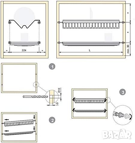 отцедник за съдове е валиден за поставяне в мебели с ширина 45 см и