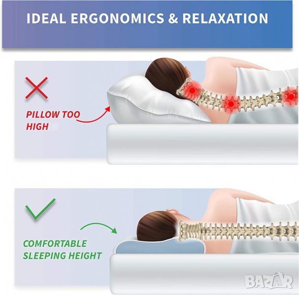 облекчаване на вече съществуващите оплаквания и облекчаване Ергономичната възглавница за поддържане на врата от MyComfy ви помага да лежите правилно и да спите спокойно.