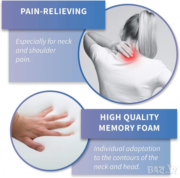 𝗦𝗰𝗵𝗺𝗲𝗿𝘇𝗹𝗶𝗻𝗱𝗲𝗿𝗻𝗱 - Поддържащата възглавницата MyComfy се адаптира към формата на извивката на врата. Облекчават се шийните прешлени, мускулите и нервите. Разработен е с цел облекчаване на болки в гърба и врата и други ортопедични оплаквания.