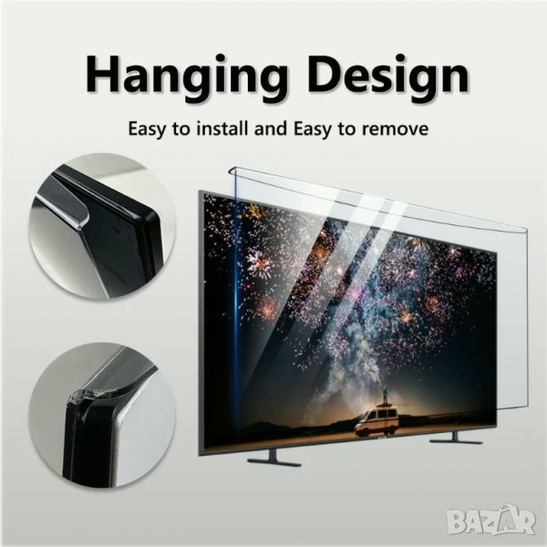 Телевизор 83" диагонал на екрана, материал здрав акрил, най-качествените протектори, съответно са и по-скъпи. Монтаж лесно закрепване отгоре над телевизора с кукички - 239.99 лева
