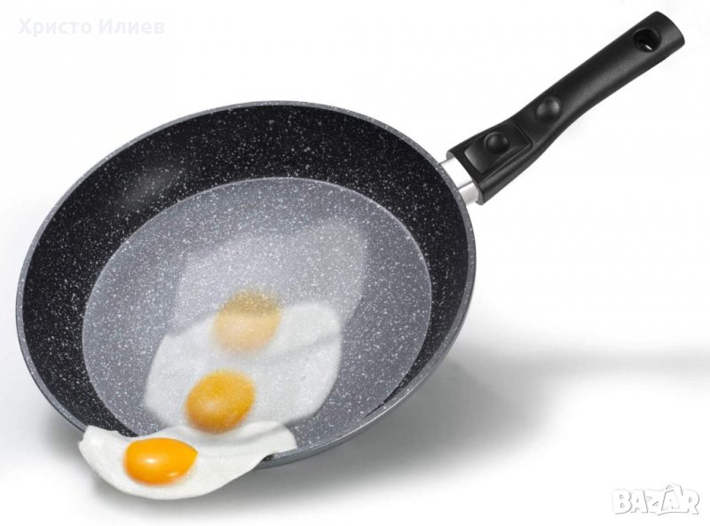 Тиганът Stoneline 28 cm позволява пържене на месо и риба без мазнина и масло, но тиганите за пържене и соте могат да се използват както обикновено за пържене с мазнина или масло.