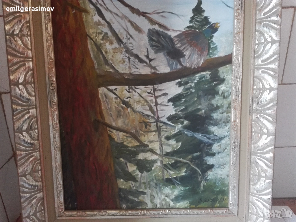 Красива авторска картина с размери 54/46 см. без рамката. Техника масло върху фазер.Хубава дървена рамка. Наличен подпис на художника.