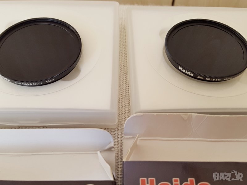 Сетът Haida ND е от ND 0.9, 8X + 1.8, 64X + 3.0 , 1000X - един , три и 10 стопа . CPL филтърът е марка Hoya. Всички са с оригиналните си опаковки . Отворени са веднъж само за проба и тест и разбираемо нямат никакви следи от ползване! Цената само на CPL Hoya - 25лв. На Haida ND - 30лв/бр. Обща цена на сета - 100лв