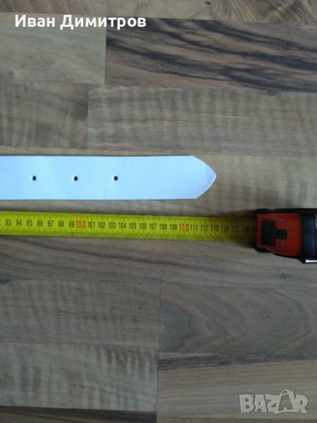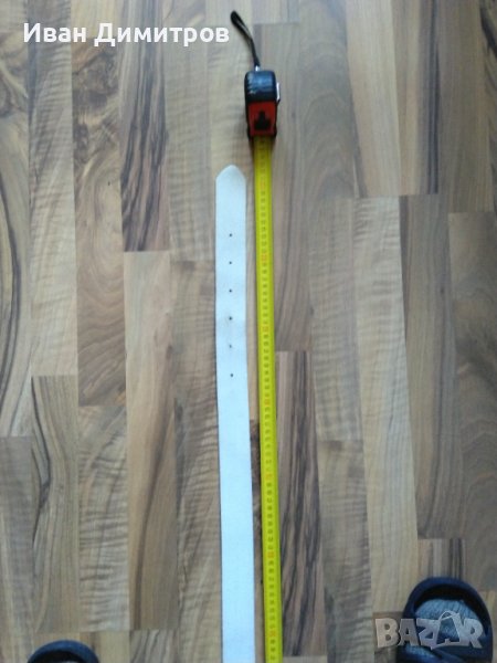 Колан от естествена кожа в отлично състояние. Последната дупка е на 103 см., а дължината е 113 см. Широчината и дължината на колана са видни на снимките.
