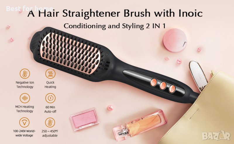 Четка- маша за изправяне и стилизиране на коса LANDOT с отрицателни йони за изправяне на коса без къдрене