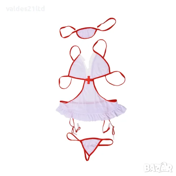 Секси костюм за дамите, които страстно желаят да се включат в предизвикателството, бондидж игрите. Идеален за тези, които искат да внесат нови изживявания в ролевите игри в интимните си моменти. Той е предизвикателен, еротичен и предлага множество възможности за изразяване на фантазии. Жартиерите и дългите чорапи допълнително подчертават краката и придават класическа еротика.