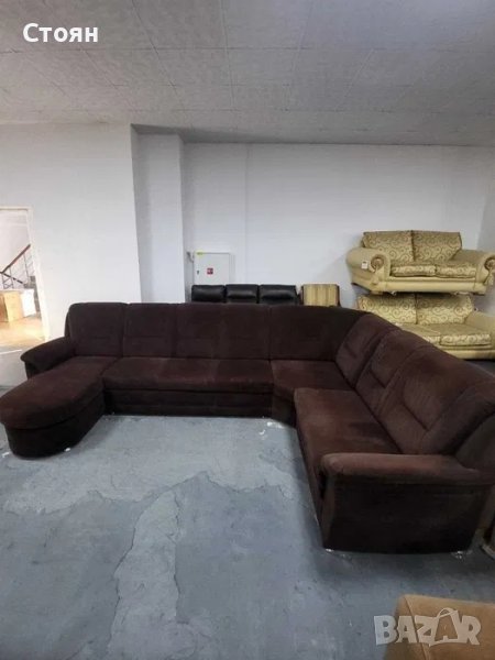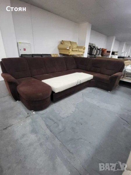 Кафяв ъглов диван П форма от плат с функция сън "PP-QL11014".