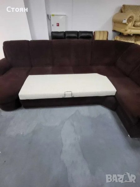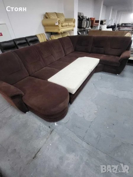 ПРОМОЦИЯ!!! Кафяв ъглов диван от плат с функция сън "PP-QL11014"