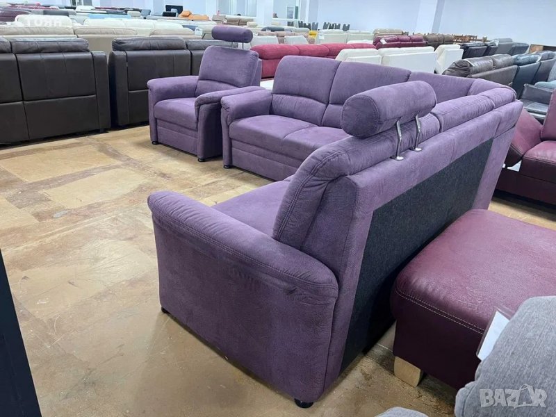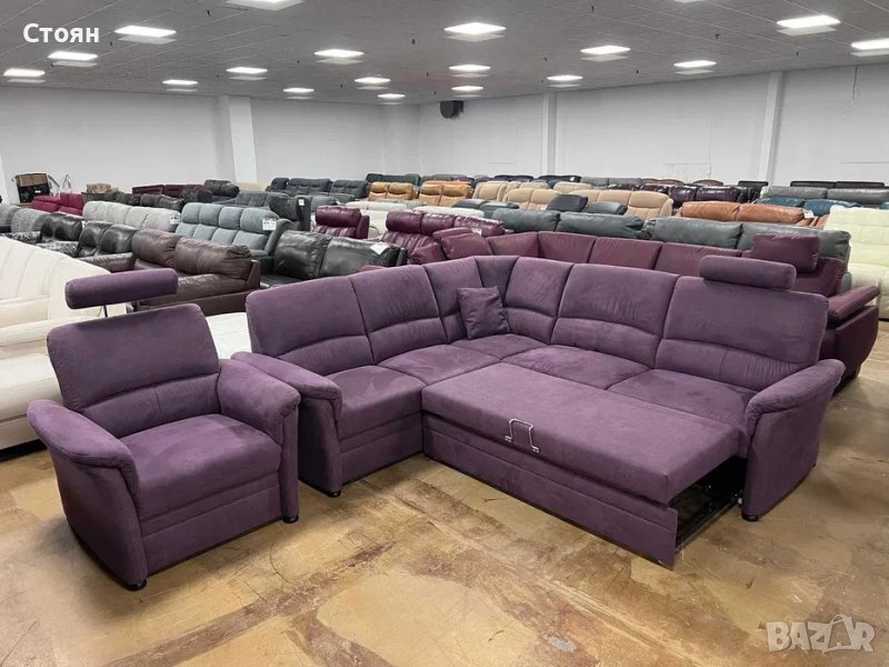ПРОМОЦИЯ!!!Лилав ъглов диван от плат с функция сън и фотьойл "PP-HS14006" → Обява 39971345