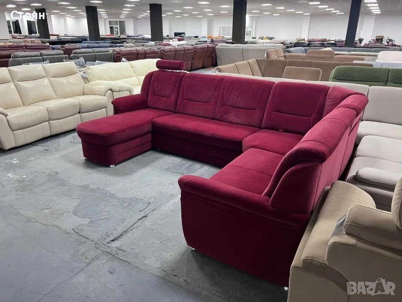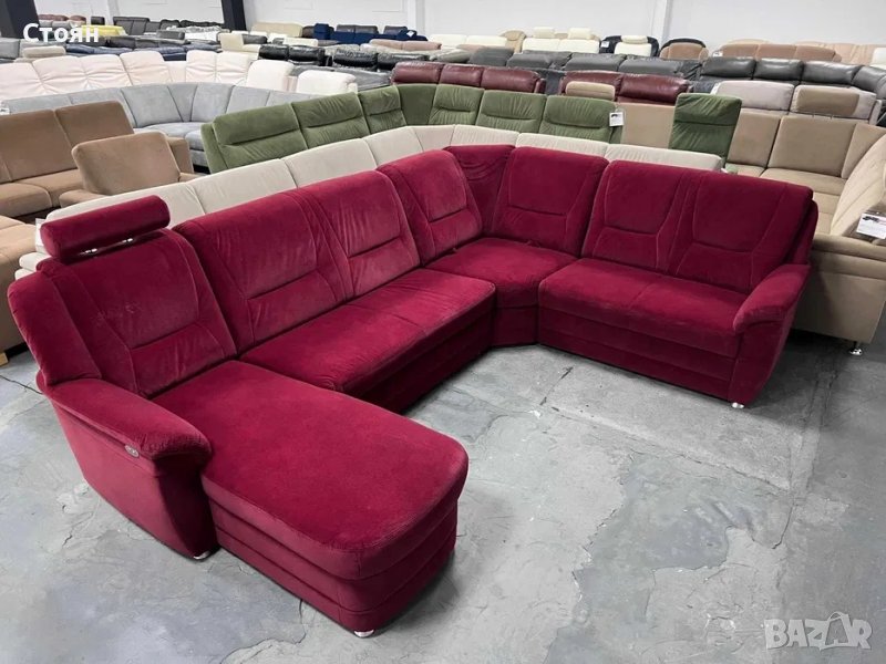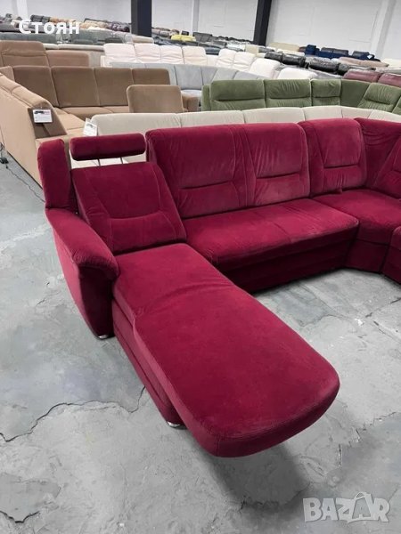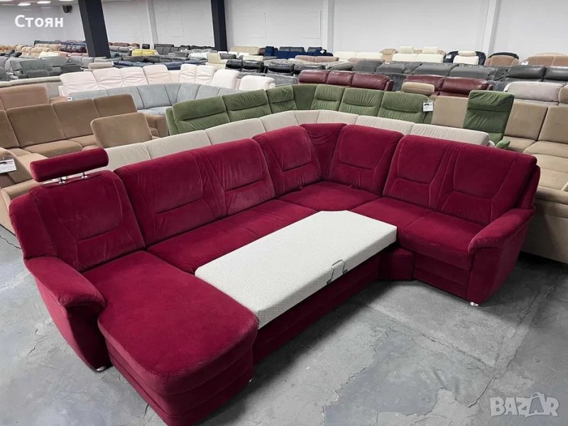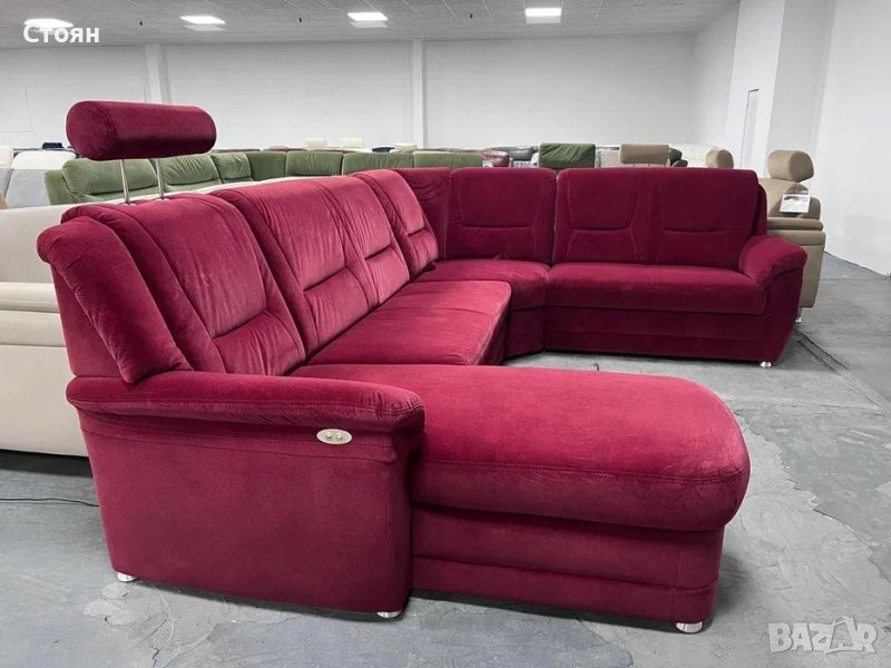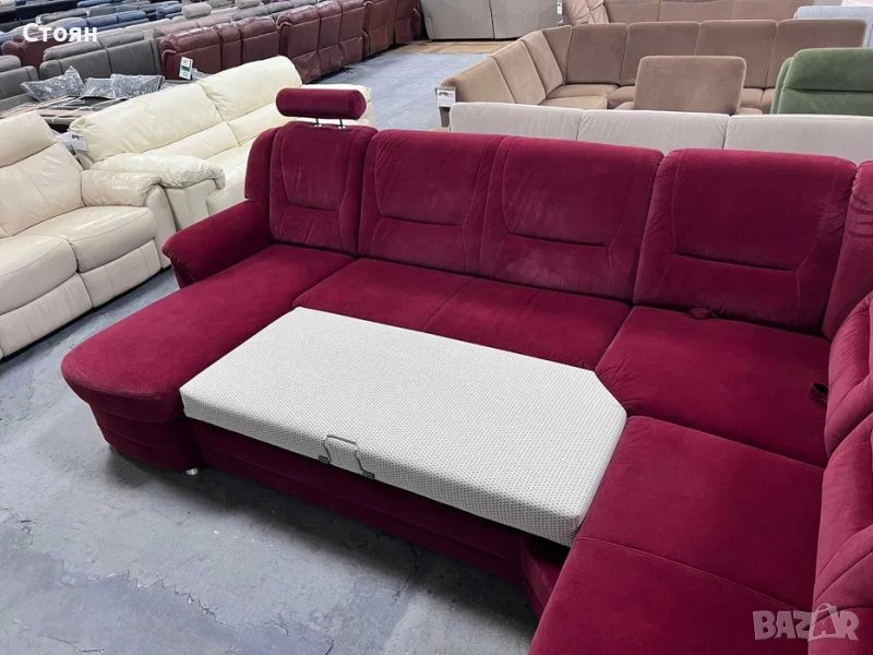 ПРОМОЦИЯ!!! Червен ъглов диван от плат с ф-я сън и ел.лежанка "SC Classic"