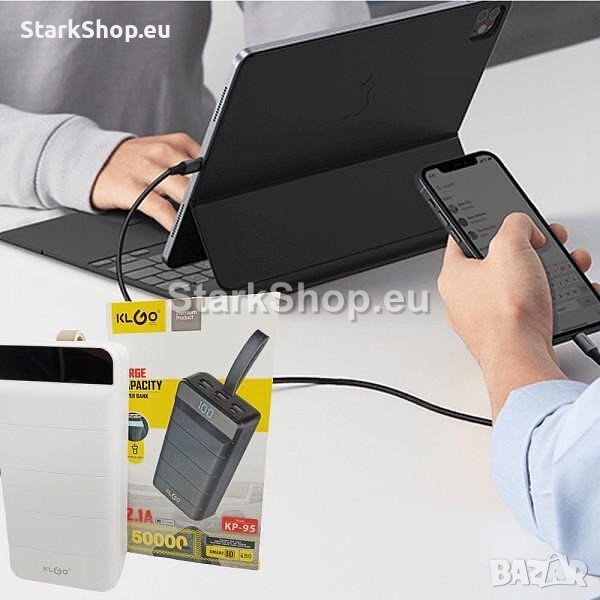 Супер мощна външна батерия / Powerbank KLGO с реален капацитет от 50000mah. Лед фенер и LED дисплей с проценти на батерията.