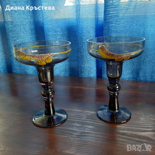 10. Чаши шампанско опушено стъкло, рисувани - 2 бр. - 10 €