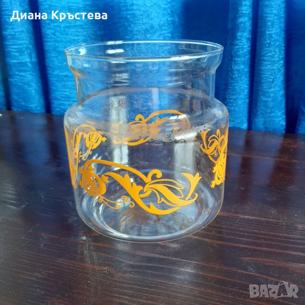 6. Стъклен буркан с оранжева шарка без капак - 2,50 €