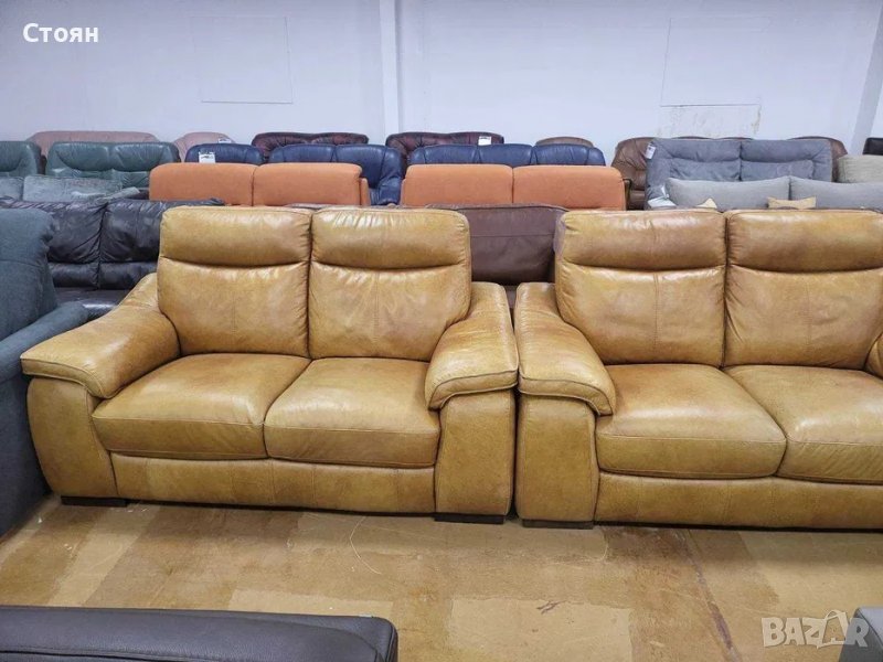 ПРОМОЦИЯ!!! Два оранжеви кожени дивана двойки - естествена кожа