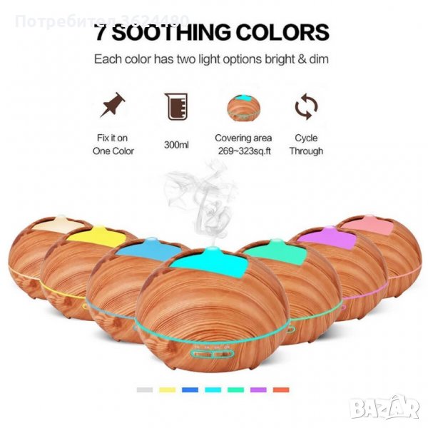 Дифузер и овлажнител За етерични масла, 300 мл, Таймер, LED светлини